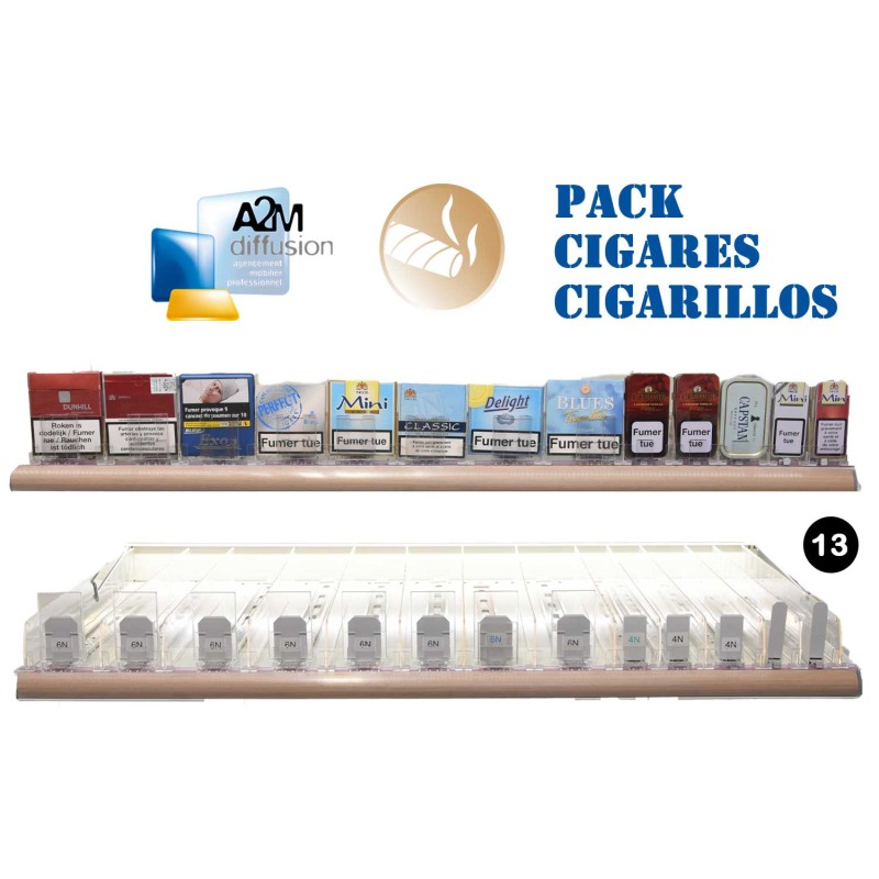 Pack conçu pour 1 mètre linéaire soit 15 rangées de cigares et cigarillos décomposées comme suit :