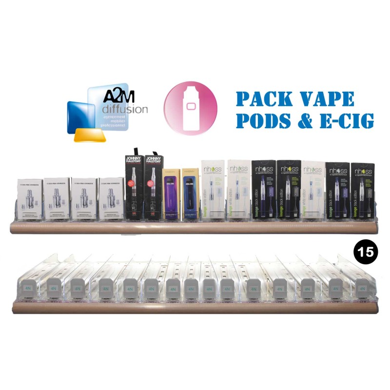 Pack conçu pour 1 mètre linéaire de cigarettes électroniques (e-cig) emballées et/ou pods.